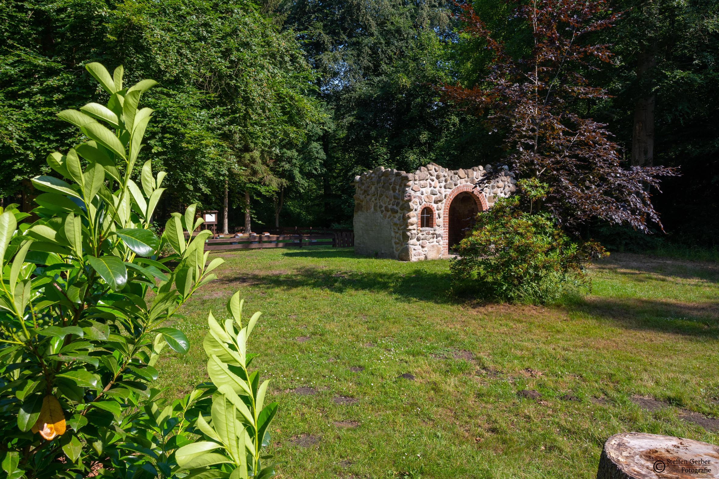 Sehr gepflegter Friedhof unmittelbar neben dem Jagdschloss Gelbensande, dem ehem. Lazarett.